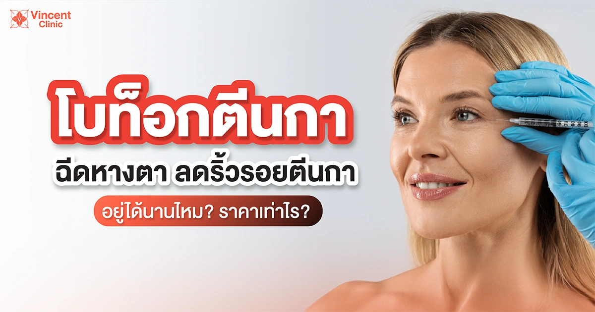 โบท็อกตีนกา เป็นวิธียอดฮิตที่หลายคนเลือกใช้เพื่อลดเลือนริ้วรอยบริเวณหางตา ซึ่งมักเกิดจากการแสดงสีหน้า ยิ้ม หัวเราะ หรือแม้แต่การหรี่ตาเป็นประจำ เมื่อเวลาผ่านไปริ้วรอยเหล่านี้ก็จะยิ่งลึกและเห็นชัดขึ้น โบท็อกจึงเข้ามาช่วยแก้ปัญหาได้อย่างตรงจุด ทำให้ผิวบริเวณรอบดวงตาดูเรียบเนียนและอ่อนเยาว์ขึ้นทันทีที่ฉีด สำหรับใครที่กำลังสงสัยว่าโบท็อกตีนกาอยู่ได้นานแค่ไหน ต้องใช้กี่ยูนิต และราคาเท่าไร บทความนี้ Vincent Clinic Aesthetic คำตอบครบทุกมุมที่ควรรู้ก่อนตัดสินใจฉีดค่ะ