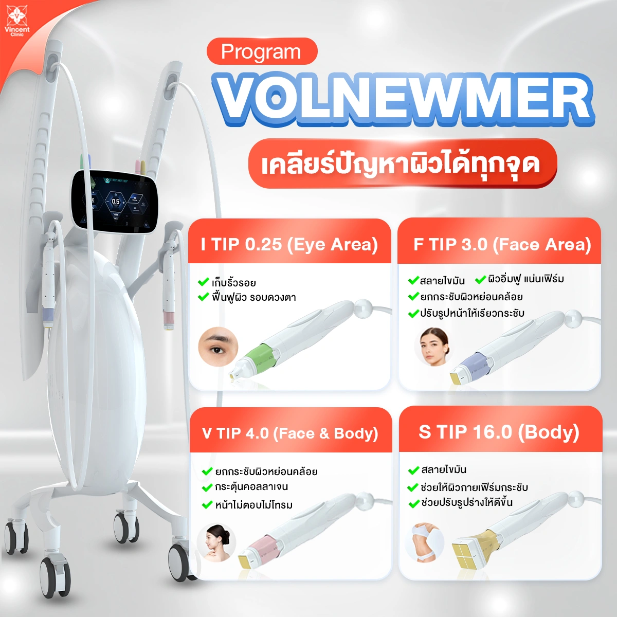 Volnewmer ถือว่าเป็นนวัตกรรมช่วยฟื้นฟูผิวพรรณให้กลับมามีวอลลุ่ม ผิวเต่งตึงเรียบเนียน ยกกระชับ ทั้งยังช่วยสลายไขมันตามร่างกายได้อีกด้วย โดยไม่ต้องผ่าตัด ไม่ต้องพักฟื้น เหมาะกับคนที่มีเวลาดูแลตัวเองน้อย ไม่ต้องการพักฟื้นนาน ๆ หากใครที่ต้องการแก้ไขปัญหาผิวหย่อนคล้อย มีไขมันสะสมที่ต้องการกำจัด สามารถเข้ามาขอคำปรึกษากับทีมแพทย์มากประสบการณ์ของ Vincent Clinic เพื่อให้แพทย์ช่วยประเมินและออกแบบการรักษาให้เหมาะแต่ละคนมากที่สุด